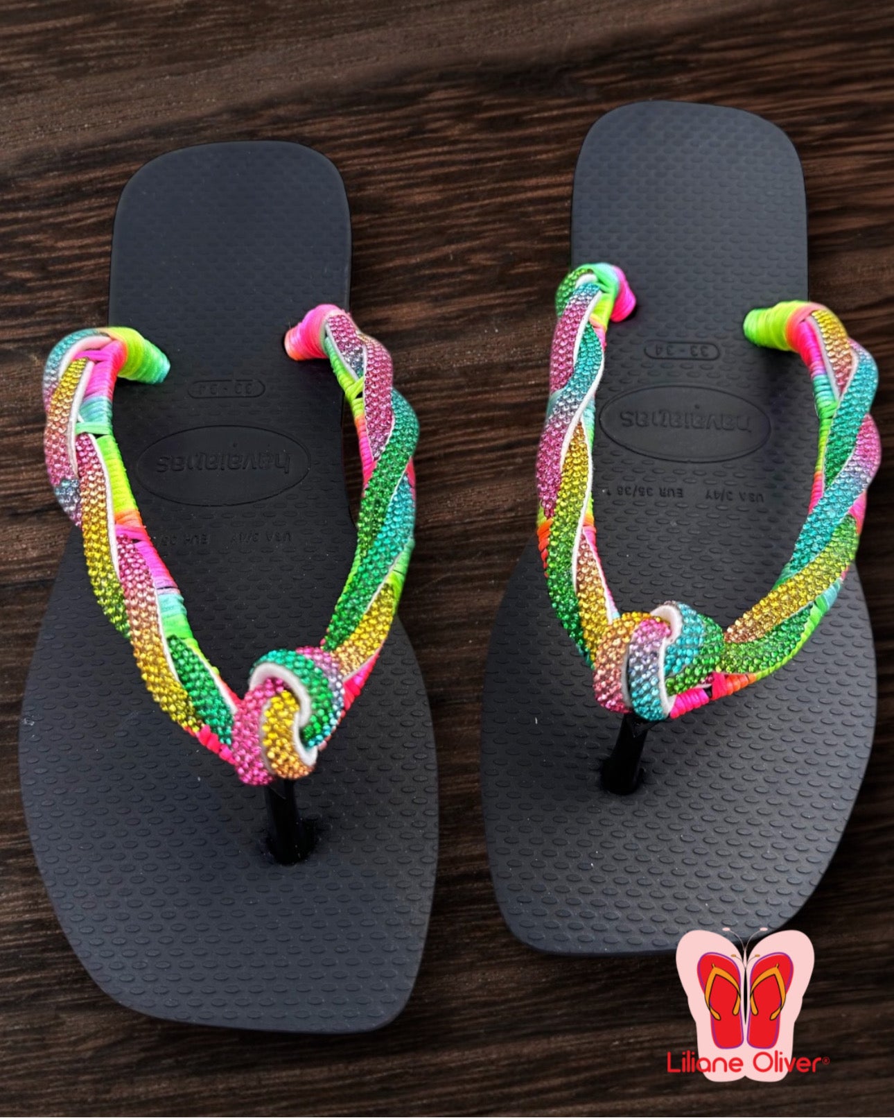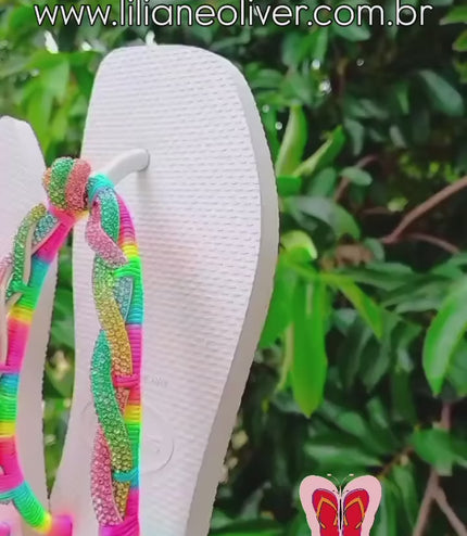 - Detalhes em pedrarias multicoloridas que garantem brilho e exclusividade